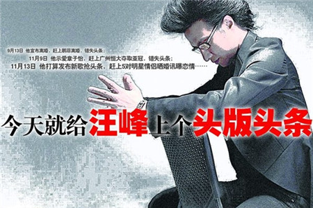 作为2013的头条人物,汪峰可谓居功至伟:从汪峰发表离婚声明,却遭遇天后离婚;向子怡表白,又碰上恒大夺亚冠;打算发布新歌却遭遇“隆诗恋”,然后的然后杨幂又在腾讯微博宣布和刘恺威的婚讯……