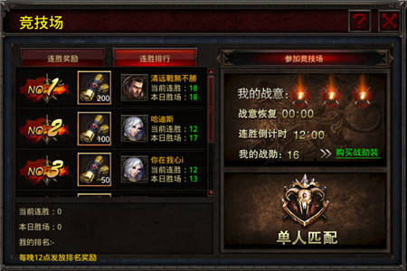 世界频道里的“喇叭”、角色VIP头衔和游戏公告就不用多说了,这里幻语要告诉大家的是“竞技场”和“巅峰对决”。