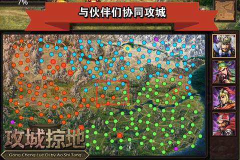 本作独创的全新国战系统以独特的战斗参与方式开启了策略类手游新玩法。24小时在线PVP国战系统,让玩家可以与其他玩家结盟,共同攻打敌对势力,一举体验群雄争夺天下的乐趣。游戏中多达247座的城池关隘,等待着玩家们奋力抢夺,同时通过国战来击败他国玩家,不但能占领他国城池,还能获取更多军资装备!探索未知迷雾地带,攻打城池扩充疆土,体验身临三国大战场的快感。