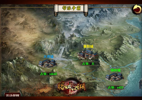 小编先问一个老套的问题,你是要江山还是要美人?小编的回答是江山,这有了江山还愁没有美人吗?《格斗江湖》的帮派争霸目的就是抢地盘夺江山!小编自然是坐不住啦,不过还是要先把详细内容先给玩家介绍一番,在地图中,咱们可以看到三座城池,咱们打帮战就是要争夺这城池,不过这些城池并非空城,一早就有BOSS霸占其中,所以帮战未开先推BOSS!报名参加帮战的帮派,会分别进入副本中击杀BOSS,最快击杀BOSS的2个帮派才有资格进入到正式的帮战,其它帮派就只有各回各家各找各妈了。