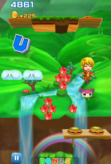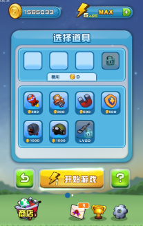 更有降落伞、弹力鞋、防护罩、火箭、磁铁、铁球、反磁铁等多重道具惊喜不断。通关过程中会出现B,O,N,U,S5个字母,集齐五个字母即可进入fevertime场景,获得加倍的得分和金币。