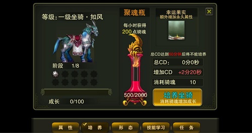 坐骑的功能不单单只是一个新式的交通工具而已,在《神鬼幻想》的世界里,一个好的坐骑,也将是你战斗的好帮手。玩家拥有坐骑之后,在战斗模式下会多一个伤害技能,你的坐骑将会与你一同对抗强大的敌人。