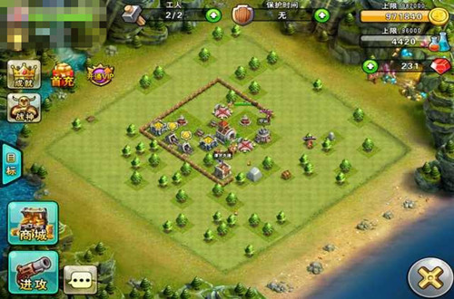 在自己的部落里,玩家可以建造自己的兵营、炮塔、营地等。经过不断的升级加固后,这就是玩家对外攻击的资本。而修建这些需要资源,这些资源从哪里来呢?有两种方法,一种就是增加自己建设,一种就是派自己的部队去掠夺别人的资源。游戏抓住了人类的一种心理,掠夺的喜悦、快感,被侵犯的愤怒和心理落差。让玩家从始至终都能获得发自内心的快乐。
