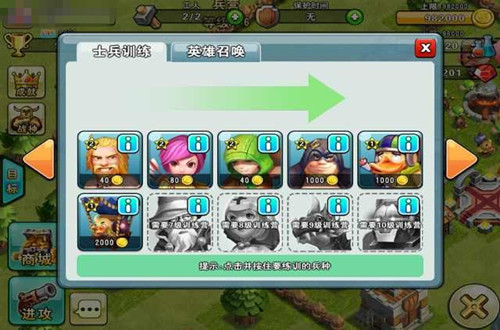 丰富的游戏兵种,让玩家能在部落培养很多兵种:步兵、弓箭手、盗贼重锤等。多种士兵搭配作战才是胜利的关键,玩家需要考虑的是派出什么种类的士兵作战,前期进攻还算轻松,到了后期玩家就要好好考虑好好培养士兵了,没培养好士兵的话就等着被对手灭团吧。