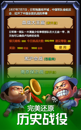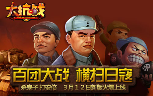 痛快杀鬼子,掌中大抗战!中国第一抗日手游《大抗战》全面变革,3月12日新版“百团大战”火线出击,以组兵团、杀安倍,拉开终极灭日的序幕。