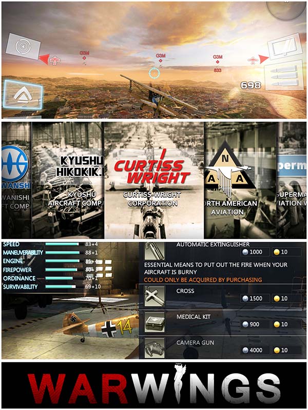 《War Wings》(血战长空)由动鱼数码在北京的工作室以Unity3D引擎研发,真实反应二战时期空中战场为题材的3D飞行射击游戏,陀螺仪加虚拟按键操控,支持手柄,诸多PvE任务关卡,支持玩家同时4对4的PvP多人联机战斗。游戏具有一流的画面,战机运动、飞机尾迹和太阳眩光犹如真实,激烈空战被详尽呈现。攻击伤害计算科学严谨,绝不会出现只击中尾翼而飞机解体的乌龙事件。并且为智能手机制作了专门的操作方式,可以凭借滑动屏幕的简单手势完成各种特殊机动动作,任何水平的用户都很容易地上手。