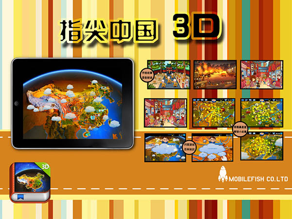 ChinaAtlas是一个为4~8岁儿童设计的3D互动中国百科地图应用,通过有趣的语音、图像、互动来告诉孩子们我们的国家都有哪些大山大河和风土人情以及耳熟能详的典故(比如破釜沉舟、涿鹿之战)。这款应用通过极为易用的触控屏幕和精美的Unity 3D建模, 吸引孩子无拘无束地居高临下,观赏祖国的地形地貌,还可以亲手去与各种风土人情、自然景观、人文故事进行互动:亲手尝试铸造青铜剑、切刀削面、把铁水浇入炼钢炉,甚至从头到尾完整地烧制出精美的陶器。