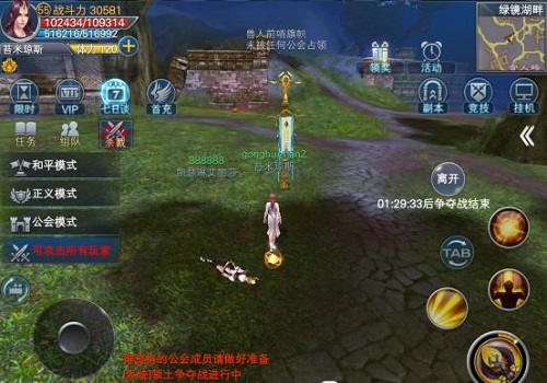 个人的强大在这个庞大的大陆中依旧显得渺小,整个公会的强大才是你勇敢前行的坚实后盾!为了让公会得到更好的发展,尽快成为佩鲁奥王国的中坚力量,国王新颁布了一道紧急命令:每周6晚上九点到十点半,都会在回音沙漠、永歌草原和绿镜湖畔三个地区各进行一场公会领土争夺战。每场战斗最多有三个公会同时参加,胜利者可以获得所属地图副本的占领权。