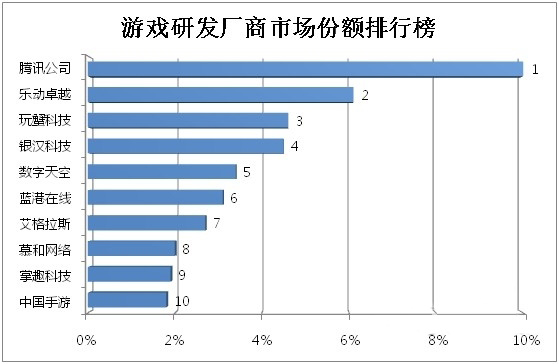 根据速途研究院发布的2014年2月手游市场分析报告显示,国内游戏研发商市场份额比例玩蟹科技位于全国第三,仅次于腾讯游戏和乐动卓越,位居国内一流手游研发商前列,旗下明星手游《大掌门》爆红ios和android平台,在收入和用户数上均表现不俗。
