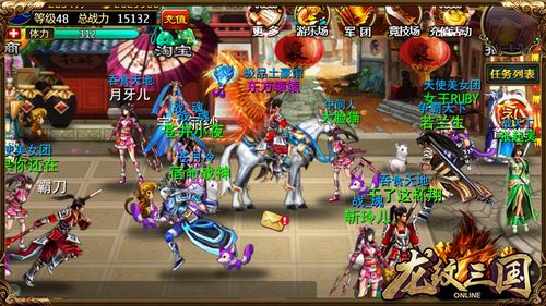 iPad\iPhone\iTouch及各款安卓手机,皆可流畅感受《龙纹三国》华丽画面与万人国战。0.2MB/小时的超低流量,一小时费用折算仅为3分钱!即使在无Wi-Fi场所也可尽情投身三国沙场!多平台互通的“大混服”技术,让不同平台的手机玩家可以在同一个服务器、同一个军团内并肩战斗,继续端游时代的公会情谊!