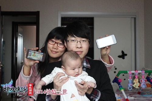 《神雕侠侣》手游玩家混小乱分享的这张照片特别有意思,他抱着孩子一脸满足笑容,诞下麟儿的妻子则双手举着两个正在运行《神雕侠侣》游戏的手机,倚在他肩头。混小乱说妻子在怀孕期间喜欢上了《神雕侠侣》手游,还拉着他一起玩,久而久之玩《神雕侠侣》就成了两个人共同的爱好,甚至可以说是习惯。如今他们的孩子已经三个月了,他们也从公测期玩到了现在,生活游戏两不误,从他分享的照片中都能感受到满满的幸福和爱意。