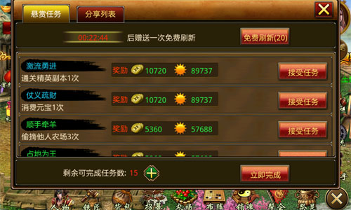 游戏中的小伙伴们总是在为了战力提升等不懈的努力着,为了获得海量的经验,更是一番煞费苦心。这种时候千万不要错过悬赏任务,悬赏任务是《神器》中的一种特殊的任务玩法,小伙伴们每天都可以接取各种悬赏任务来做。勇于探险,勇于挑战。