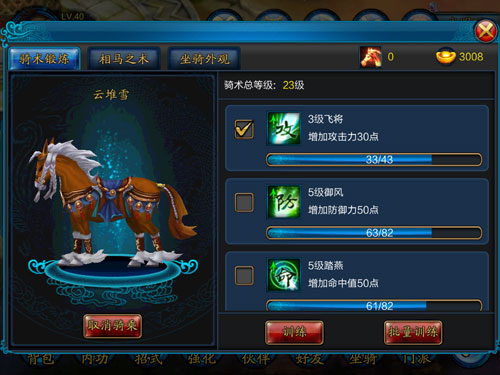 征战江湖,怎能少盖世神驹陪伴。《叫我大侠》全新坐骑系统,将为玩家呈现那些传说中的名驹。玄沙绝影、霸王乌骓、照夜白龙、噬电玄龙,史上神骏将悉数呈现。炎黎赤兔、飞沙的卢,绝世名驹陪你征战沙场。动感拉风,超酷外形,不仅满足你的骑乘和扮靓需求,更是你纵横江湖的身份象征。