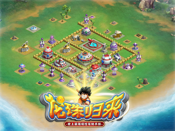 玩家在《龙珠归来》中身处真实的龙珠时代,完全忠实原著的画面和建筑风格让人身临其境。每个玩家都能在游戏初期拥有自己的一片土地,我们要建造工厂来开采矿石资源和水资源,建造仓库来储存资源,还有士兵训练营用于训练军队,精神小屋用于研究科技,赛亚人飞船用于招募英雄,当然还有炮台、能量塔、长老之塔等十多种防御炮塔……当这些建筑逐渐齐备,你的基地会成为坚不可摧的军事帝国。