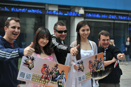 昨日上午,两名身着古代传统服装的美女现身中关村步行街,为新锐RTS手游《媚三国》宣传造势。
