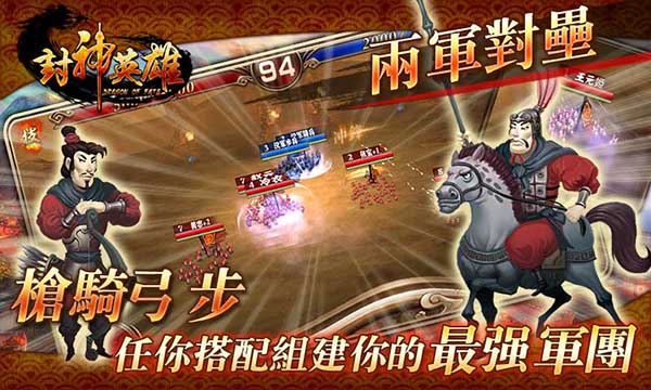 《封神英雄》是一款S.RPG类型的手机联网游戏。游戏从手游用户最原始操作习惯出发,结合手游用户的三大喜好“三消”、 “卡牌”、“动作”,敢于使用创新性战斗模式。《封神英雄》在游戏核心玩法上别出心裁,战场上有四方灵珠适时提供助力。四方灵珠在战场中随机落下,两方阵营根据技能指示及所需各自争夺。代表着朱雀、玄武、青龙、白虎力量的四方灵珠,根据每个武将特性利用不同顺序排列及组合引发其自身独特的力量,“击杀敌军”、“恢复我军”、“提升士气”等。一次失败请不要气馁,记得多试几次,四方灵珠将带给战斗无穷的变数。升级、强化武将,训练部队,以及为武将更换高等级装备,是提升战斗力甚至获取胜利的捷径和秘诀。