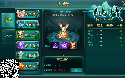 宠物作为修仙途中的好伙伴,还能与玩家在战场上同生死。首先宠物具有单独的属性战斗力,通过喂养宠物丹进阶升级,暴击、攻击等属性都会大幅增长,玩家则可以获得更加强大的帮手。在基础属性之外,更为重要的是宠物都有自己的3个特殊技能:主动技、被动技、上阵技,主动技能用于在出战的情况下攻击敌对目标,被动技能会给玩家加持一个增益BUFF,上阵技能在宠物上阵系统开放后将也会以BUFF的形式加持在玩家身上。当然,不同宠物其3个特殊技能将会完全不同,会带给玩家间对战相生相克的效果,如何选择养成类别、如何根据对手选择出战宠物,则是《仙战》在宠物系统开放之后对玩家的一个全新考验。