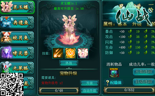 《仙战》的宠物系统并不是个花样的摆设,无论从属性养成上,还是在实战经验中,宠物都可以带来“翻天覆地”的大变化,从基础属性的加成到特殊技能的修炼,正所谓萌宠迤逦大有文章,日后爽战不负有心人。