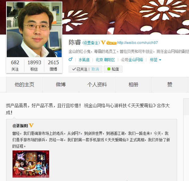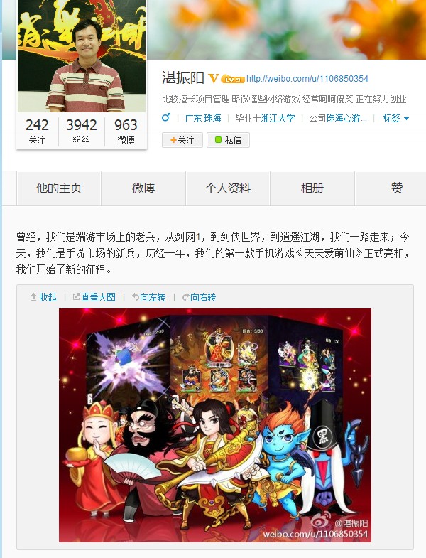 昨日,珠海心游科技有限公司CEO湛振阳在微博上曝光了公司首款自研手游《天天爱萌仙》,作为创新工场投资创办的首家游戏公司,心游科技《天天爱萌仙》的亮相也预示着李开复老师的创新工场正式进军手游行业。