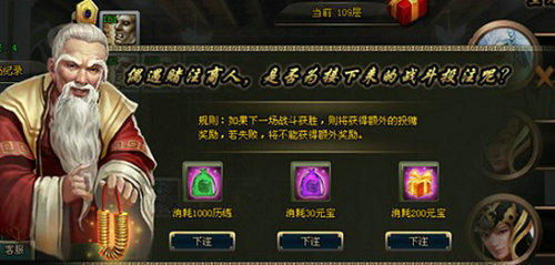 遇到赌注商人是一个特殊事件,你可以通过下注来获取下一次战斗胜利后更高额的奖励。下注可以消耗元宝,也可以消耗历练等。