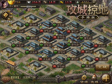内政建设中,建筑的合理搭配,祭祀的分配使用,集市及黑市物资的兑换,如何保证资源数量的平衡都需要玩家们精心计算。皇城官职之路不仅仅是为了高官厚禄,如何进阶帝王之路才是最终的谋略目标。