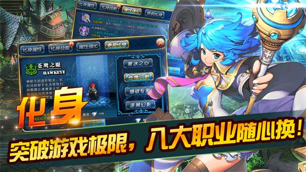 打破限制,不用练小号,用玩一个帐号的时间就能体验不同职业的乐趣,新版《君王2》“化身系统”即将重磅推出,为战斗而生,为角色而癫狂,八大职业一键切换,怎么爽就怎么玩。当角色等级达到65级后,可接取化身任务,完成任务后,可通过主界面的化身按钮,打开化身界面。玩家自由选择化身职业,魔幻世界任我行!