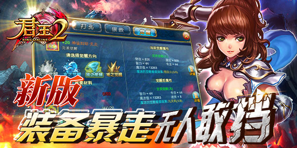 4月17日,《君王2》5.0新版新服(安卓与越狱版)联袂火爆上线。百人团队耗时数月精心打造,创新玩法颠覆你对MMORPG的认识,流畅的系统、平衡的职业、美轮美奂的光影特效、热血刺激的PVP战斗、全新升级的PVE系统将领你进入无与伦比的魔幻仙境。放飞压抑已久的内心,体验指尖极限操作快感,2014年度最火爆、最嗨翻天的MMO游戏等你前来助阵!