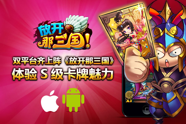 捧腹搞笑的三国剧情、百变的三国大咖集体搞乱、独创怒气大招的绝伦体验,2014最热Q版萌系卡牌手游《放开那三国》IOS安卓版本全平台正式开启上线。精美的游戏画面、革新性的卡牌玩法、恶搞三国剧情,让你在捧腹不禁大笑开怀中掌控三国局势,绝对是你从未有过的体验!