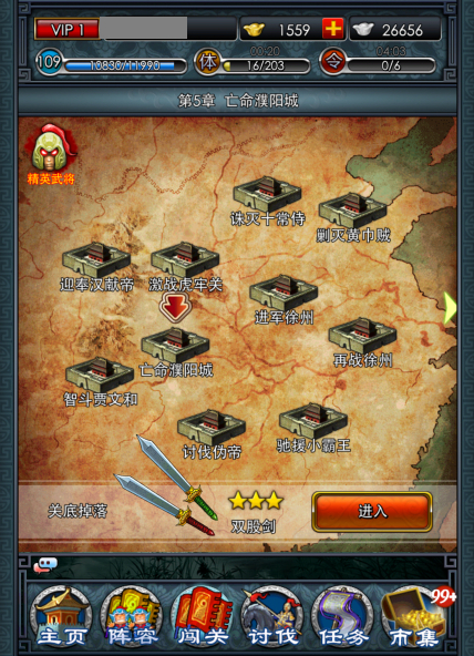 导 读: | 闯关,作为《一起闯三国》最主要的活动(没有之一),对每位玩家而言,是必不可少的。通过闯关,玩家可以获得元宝、银两、经验、体力、装备升级素材、武将和技能升级素材,甚 |
