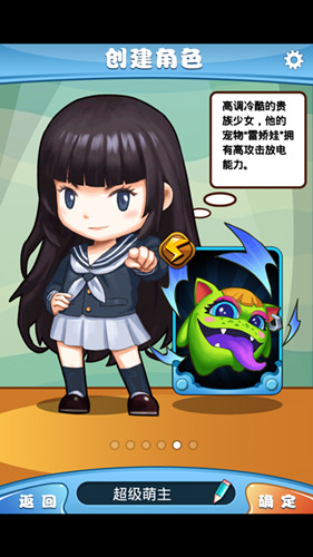 高贵冷艳的贵族少女,她的宠物“雷娇娃”拥有高攻击放电能力。虽然她看起来一副女神范,但其实心地善良,是个温柔可爱的萌妹子。