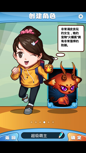 非常调皮贪玩的女生,她的宠物“火媚狐”拥有非常强悍的防御。作为一位女汉子,她的战斗力简直惊人,许多时候面对邪恶怪物师,她不用萌宠出手,直接一巴掌把对面甩飞五条街。但其实每个女汉子心里都住着一位天使,她们敢作敢当毫不做作,上得了厅堂,下得了厨房;杀得了木马,翻得了围墙;斗得过小三,打得过流氓。