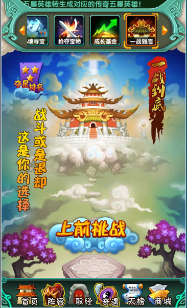 除了传统性卡牌游戏内容外,《天天来取经》具备多项独特玩法。热血激昂的一战到底,通过连续挑战高难度妖魔,从而获得极高的奖励。玩家之间也可相互抢夺各类宝盒碎片,集齐宝盒碎片后可获得相应的宝盒奖励,这其中包括紫色武器、极品法宝等稀世珍品。