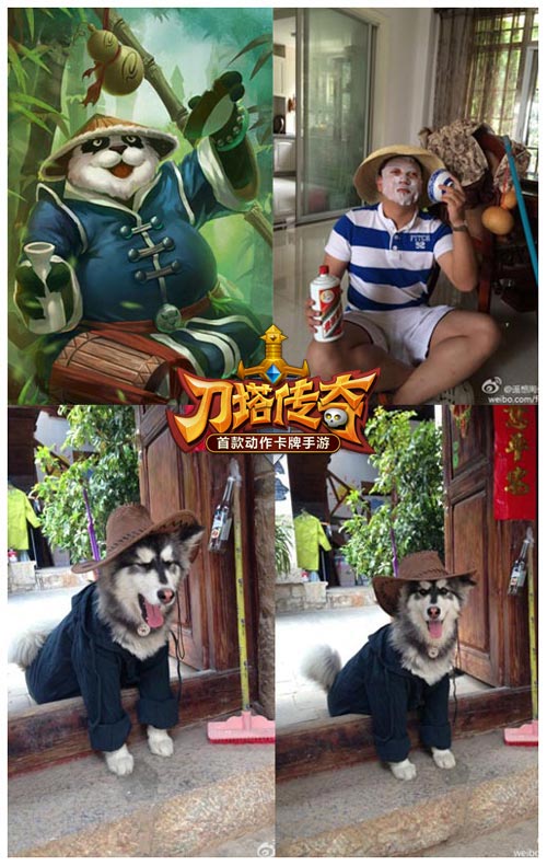 但是!!!第二天剧情大逆转有木有!!!有玩家派自家的哈士奇贱贱地出场COS熊喵酒仙,这帽子、饮料瓶、拖把,逆天的萌、逆天的贱。这条微博下有玩家评论:“我深深地觉得昨天COS熊喵的大哥被严重羞辱了。”其实,小冰冰也有同感。。。