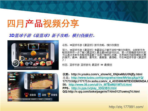 四月之中,我们出品新手攻略视频:横扫伪操控。新手攻略视频带你一步了解《最篮球》最全最High的游戏玩法。视频介绍从账户信息、经验条、体力值、消息提示到球队管理与商店,从独特的篮粉、荣誉值系统、小秘书到排行榜与比赛系统等,清晰明确,简单易懂。横扫一切伪操控,延续你的不败神话。