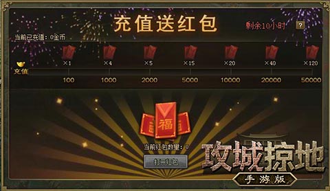 充值10000金币,可获得20个红包。