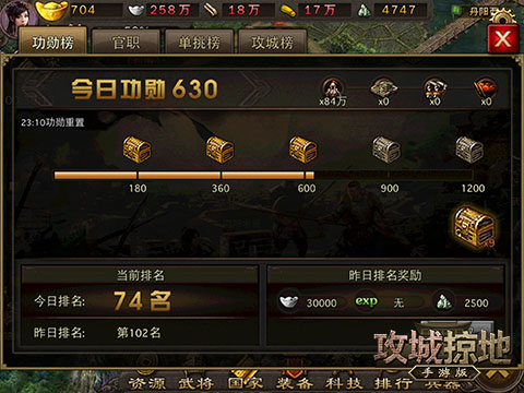 新版本的功勋奖励,新增接官员令可获功勋功能,升级资源区建筑也可获得功勋奖励。