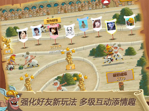 在《天天跳羊羊》中,好友的酷跑进度会显示在头像上。而头像也会以弹窗显示横向排列,点击头像可查看好友的基本信息,不仅如此,游戏会以动感模式呈现玩家在无尽模式里超越好友的进程,并可以向其进行炫耀,让超越更惊心动魄、让互动无处不在!