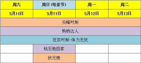 钻石抱回家:5月11日登陆的用户,将在5月12日收到88钻石登陆礼。