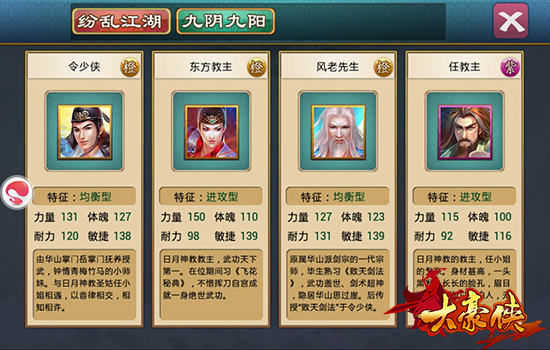 想成为《大豪侠》中的武林盟主,必然要有各个豪侠鼎力相助才可。与小说中的各个名人一起游历江湖,也是一大快事!下面就来讲讲《大豪侠》侠客属性如何培养。