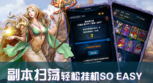 新增副本扫荡功能,让你感受顷刻间横少千军的刺激,当等级达到22级即可开启此功能!真正释放双手,不用再不停的点击屏幕!自动完成横扫副本任务,VIP9还可享受免CD特权。