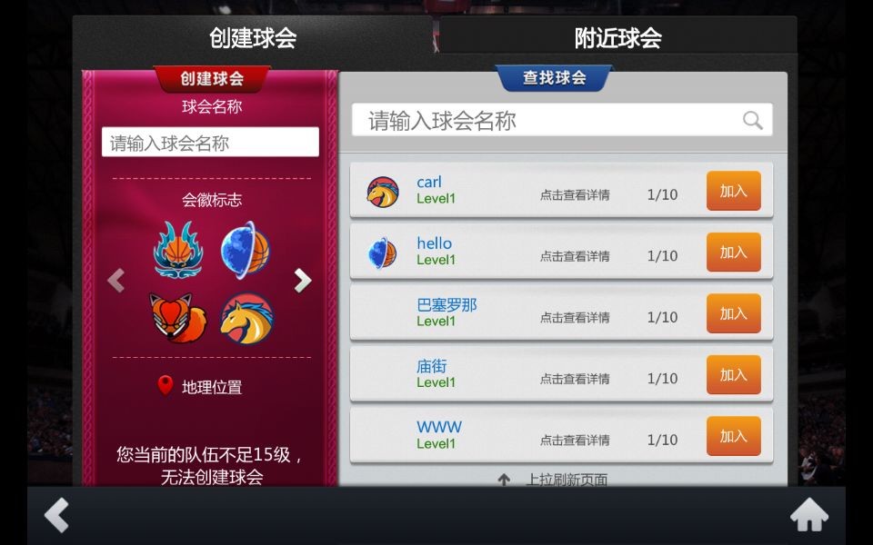 玩家在等级达到15级之时便可开启球会创建功能,而对于想加入球会的玩家们,我们并不做等级限制。只要你想加入球队,只要等到队长认可,便可加入球队。