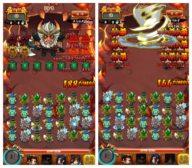 《爱消魂》是一款以三消为基础战斗方式的卡牌手游,玩法上借鉴了日本爆红手游《智龙迷城》的优点,并创新融入多种本土化元素。战斗采用两军对阵的方式呈现,强调战斗过程的即时性。玩家需要对本方士兵进行传统三消操作,消除成功后会对敌方士兵造成伤害,连续消除还能积累combo,触发玩家卡牌所拥有的武将技,瞬间造成大量伤害。击溃敌方士兵后就会面对BOSS, BOSS战则采用了白刃相接的战斗方式,玩家卡牌和BOSS进行正面对决,胜者为王败者为寇!战斗中还会根据玩家的消除次数额外触发战斗彩蛋,极大丰富战斗过程。