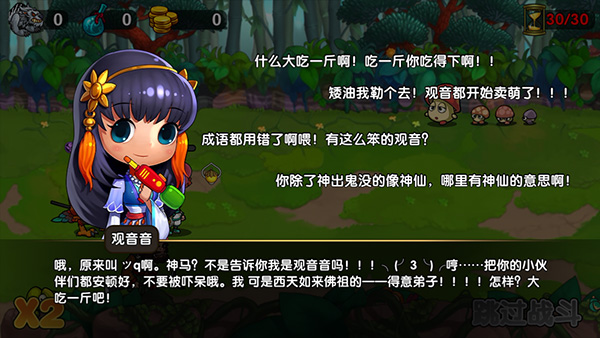 在弹幕元素注入的同时,吐槽功能也使整个游戏欢乐不断。整个剧情都以《西游记》为蓝本,但却与原著的表现形式不尽相同,无论是开场还是游戏过程中,无处不在的神吐槽,讲述着斩降小怪兽的故事。最后小编要告诉你的是,千万要一帧不落的观看剧情,会找到意想不到的通关宝典哦。