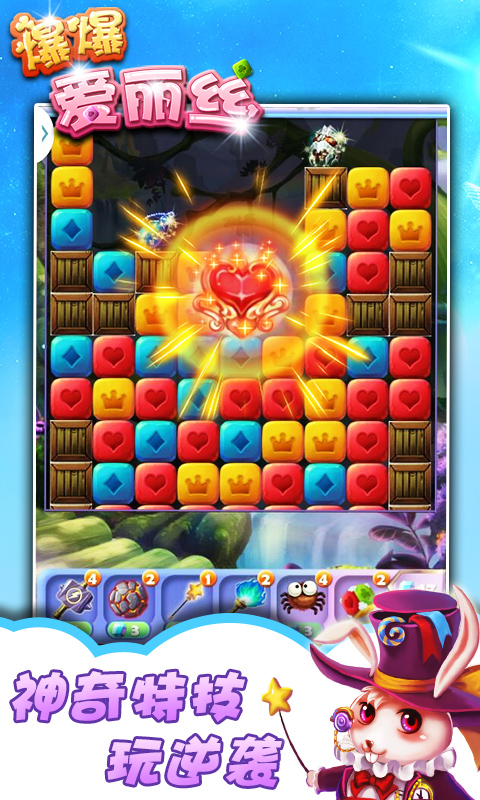 爱丽丝重返仙境了,这是个振奋人心的好消息!爱丽丝,从你离开后红皇后就大闹天下,我们的救星到了,你会运用智慧拼尽全力的,助我们一臂之力打倒她,在这里什么都有可能!是的,全新的剧情逐渐发展至《爆爆爱丽丝》的游戏世界,一切点消闯关的惊险不断发生,而爱丽丝一定会和我们一起为正义实现点消逆袭!