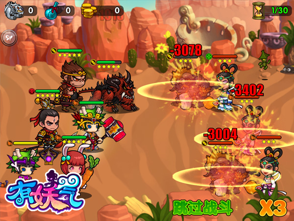作为《有妖气》的美术团队,游戏整体采用Q版设计风格,对人物采用3头身风格设定,着重对面部细节进行刻画。融合先进骨骼动画制作,无论从人物特点展示,还是从作战观赏性来看,都将给你超强的代入感及现实感。此外对于场景细节处理也格外精细,勇闯黑风寨、三打白骨精、火烧蜘蛛洞等经典章回,通过20余组场景搭配完美展现在你的眼前,让你置身仙境摆脱回合制游戏审美疲劳的魔咒。