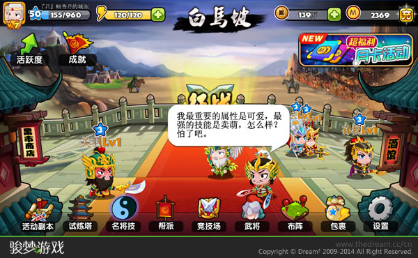 导 读: | 超人气Q版网页游戏改编,骏梦游戏核心团队开发,2014最萌Q版手机游戏《萌三国》定于今天暑期上线。作为骏梦游戏旗下首款2D萌版战棋类休闲手游,《萌三国》原汁原味的保留了网页 |