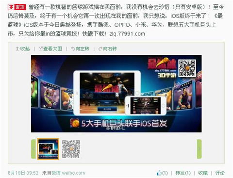 六月之中,群游汇微博发起了最篮球激情暴走季以及iOS首发登场两大活动,篮粉在暴走中追寻心灵的自由,在奔跑中让双脚,奔向比写字楼更自由的远方,而万众期待的iOS版本的登场,更是只为给大家最in的篮球竞技!