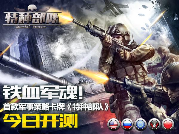 铁血军魂,无上荣耀!由卓越游戏2014年重磅推出的全球首款军事策略卡牌手游《特种部队TCG》将于今日正式开启封测!五大对立阵营、千种实战兵种、世界顶级军事单位、极致炫酷技能特效……更有海量礼包、精彩活动等你到来!