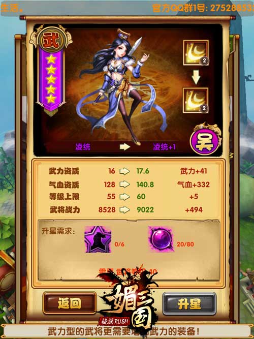 8、武将将魂系统升级为升星系统,蓝将及以上品质将领将从升星系统受益,全民DIY橙将时代来临。