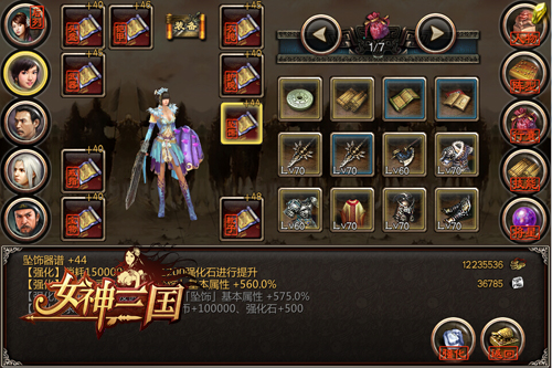 装备过时?精心培养的装备随着等级的提升而逐渐变得鸡肋进而淘汰?《女神三国》内测版本中,突破传统的桎梏,打造最良心的全新装备成长模式,新增多种神装获取途径,器谱永久提升,熔合材料消费不满全额“退款”,让你不再做无用功,装备轻松升级无鸭梨!